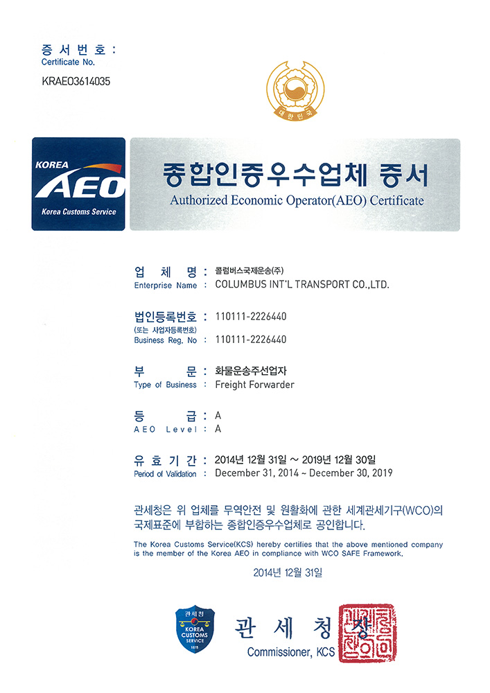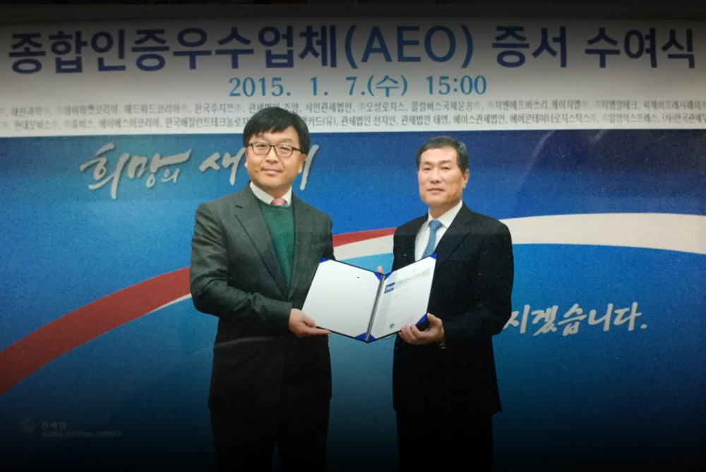 2013. 11. 08 AEO인증 취득(#KRAEO03614035) – 관세청