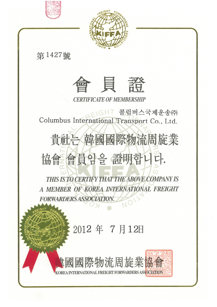 2012. 07. 12 한국국제물류협회 가입 – KIFFA